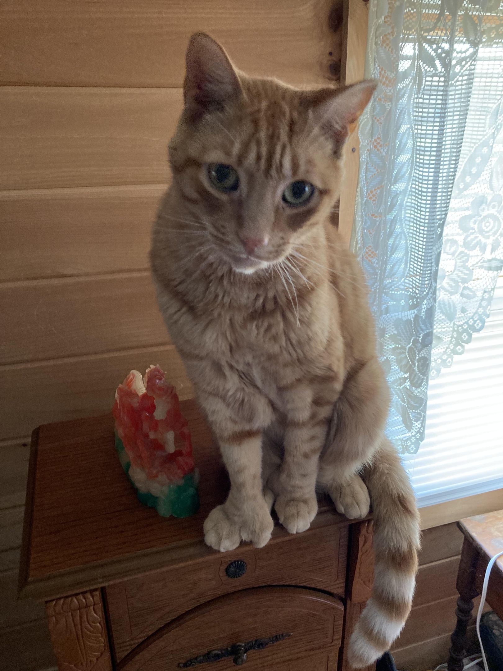Chilly’s age is unknown but my mom found him outside in 2011 and he was full grown at the time. Tia’s story of naming him Chilly because he looked cold is true only it was my mom who named him. Interestingly, when she took him to the vet for the first time he was microchipped from Wyoming and Mom lived in New York. If he could talk, he’d have quite the story to tell I’m sure.